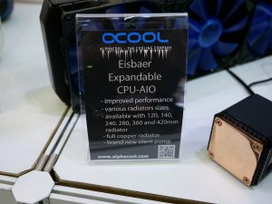 In-terms of its AIOs, Alphacool is continuing to focus on the expandable Eisbaer liquid cooler range, so there is nothing new here. However, the company did show us a new, bigger size: a 420mm Eisbaer, so 3x 140mm. You can be sure that would provide plenty of cooling power for you component(s).