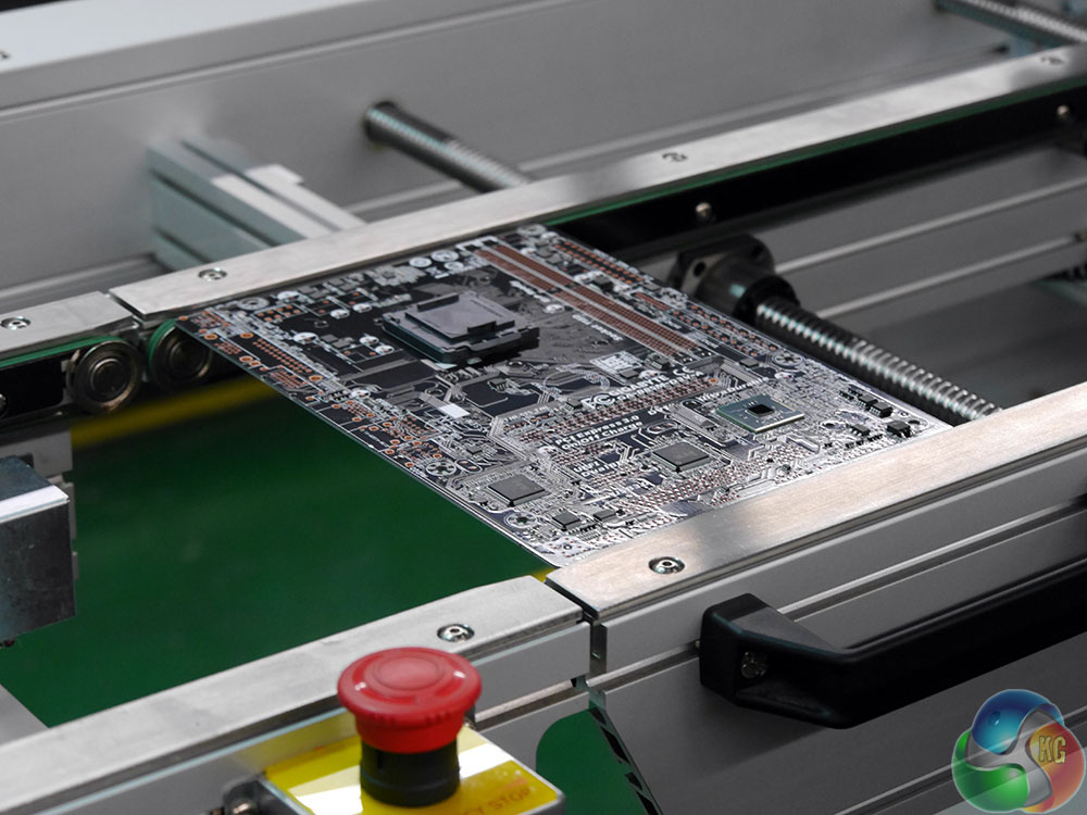 The process for making one of the company's popular mainboards, begins with the Fuji GPX HD printer, which prints out the barebones circuit board before any components are mounted.