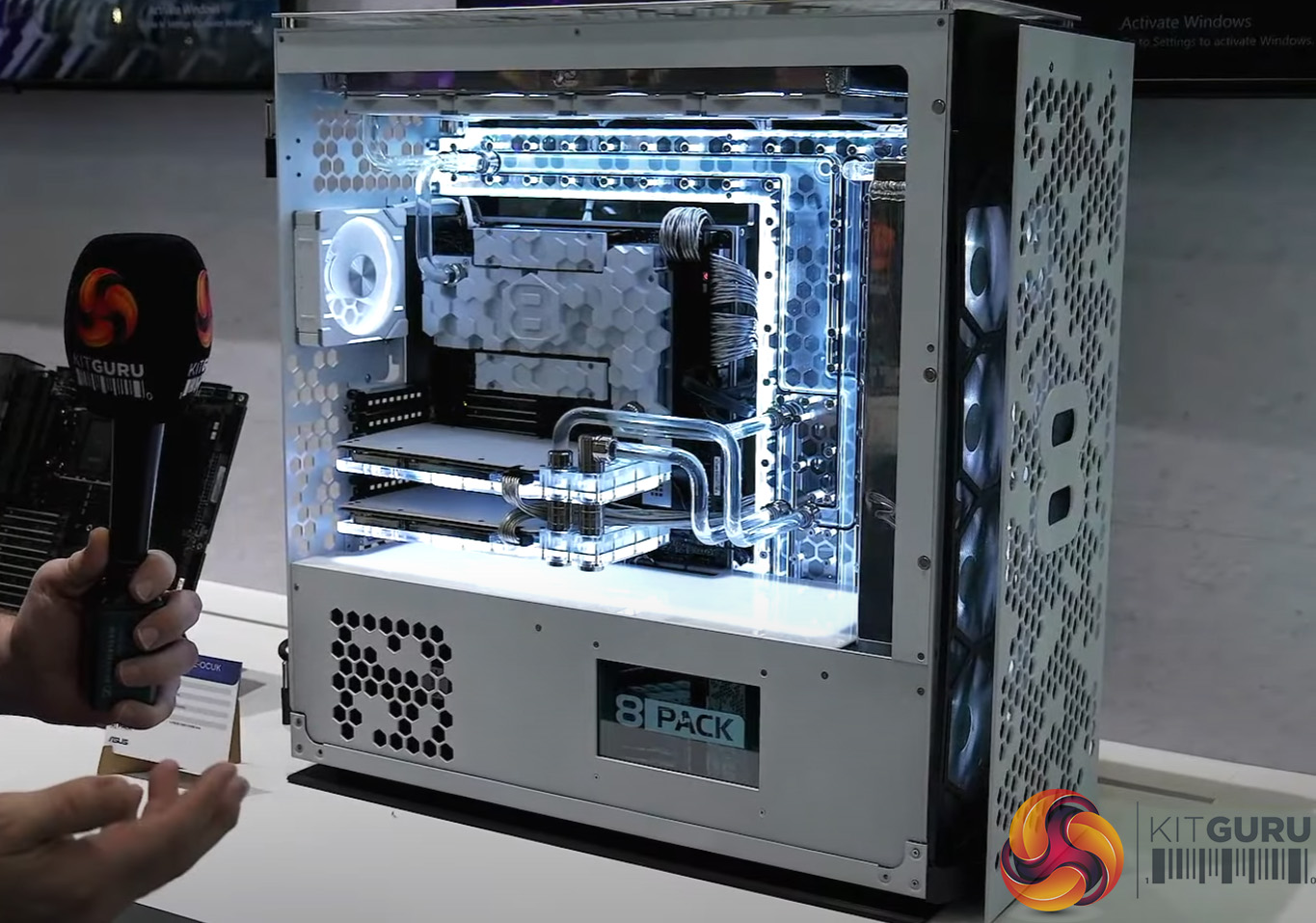 At Computex today, Leo had the chance to catch up with 8Pack, the legendary UK PC overclocking guru and system builder. Today we are getting a closer look at the new 8Pack Domin8 system, offering extreme performance through the new flagship Sapphire Rapids Intel Xeon processor, backed up by not one but two liquid-cooled RTX 4090 graphics cards.