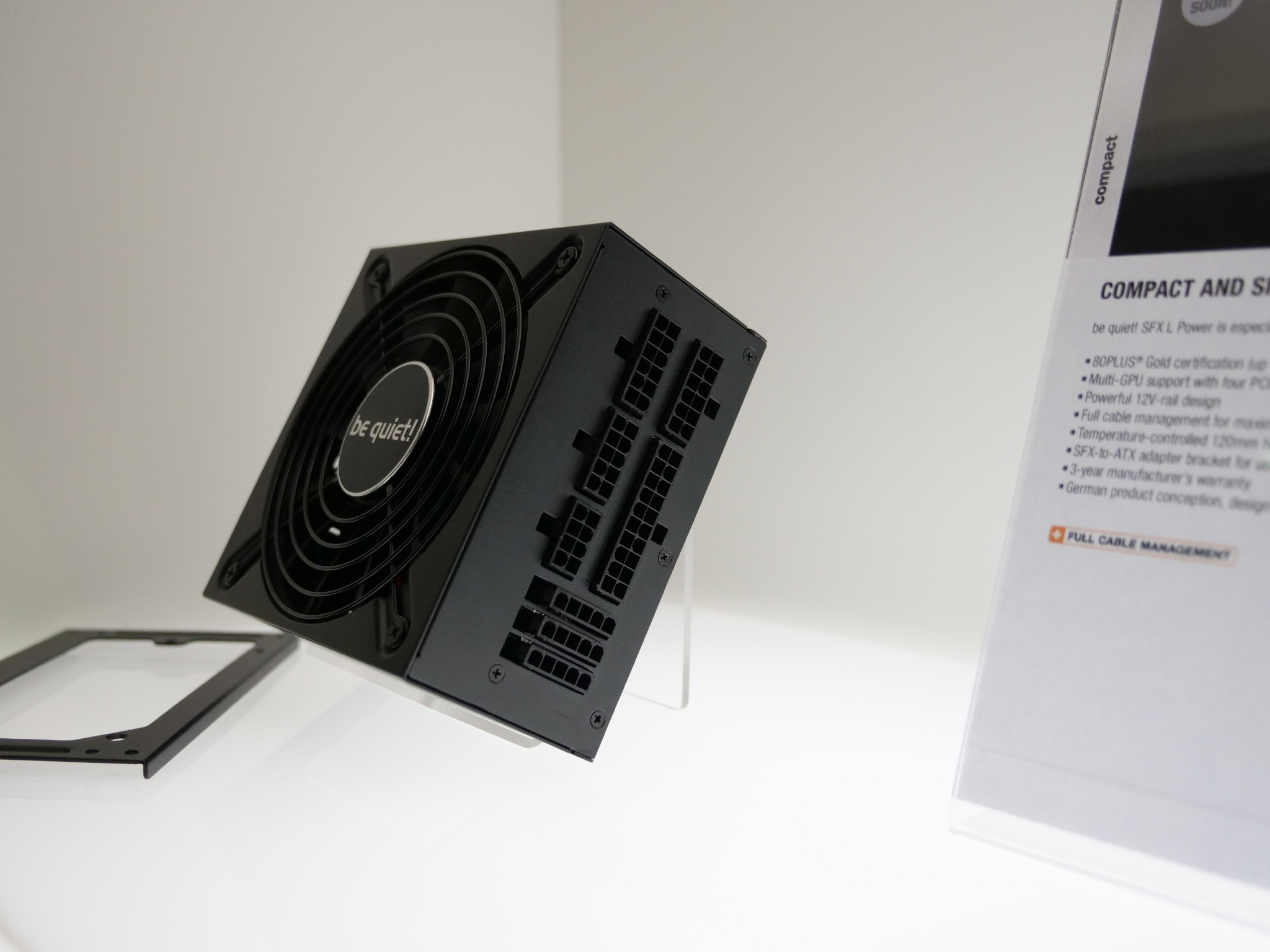 The second power supply is the SFX L, which should be compatible with most SFX cases, though this one manages to squeeze in a 120mm fan whereas most others can only fit an 80mm. This is an 80Plus Gold rated supply with LLC + SR + DC/DC topology. It comes in 500W and 600W models and should be available in August for €109 or €129 depending on wattage.