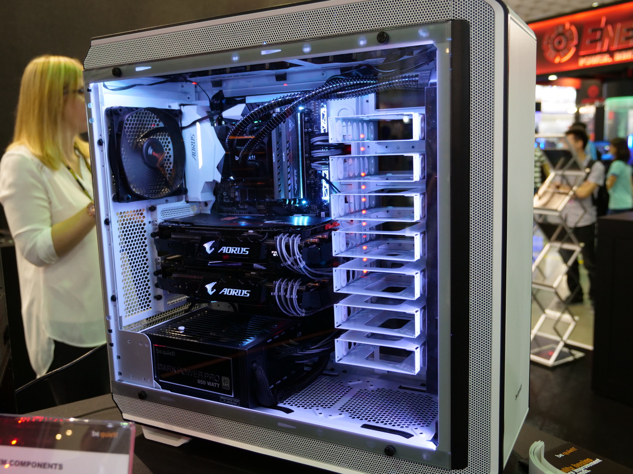The Dark Base Pro 900 has been a huge success for bequiet!, we reviewed it some time ago and gave it our Worth Buying award. At Computex, bequiet! launched an all new White Edition with a large 4mm thick tempered glass window with rubber sealing. The tray can slide around or be taken out of the system entirely to accommodate different motherboard sizes or an open-air test bench setup. Beyond that, HDD cages are singular so you only need to install what you need. Water cooling can be mounted in all areas with tons of support for various radiator sizes ranging from 120mm all the way up to 420mm.