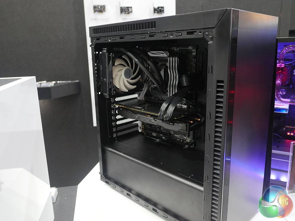 As far as cases go, we got a look at the PM-01 ATX chassis as well as a PM-01 RGB prototype. Then there was the KL-07 Kublai ATX which has an emphasis on noise deadening with minimal ventilation, foam material inside the panels and air intake slots around the front panel. Interestingly enough, the front panel on this case had a USB Type-C connector too.