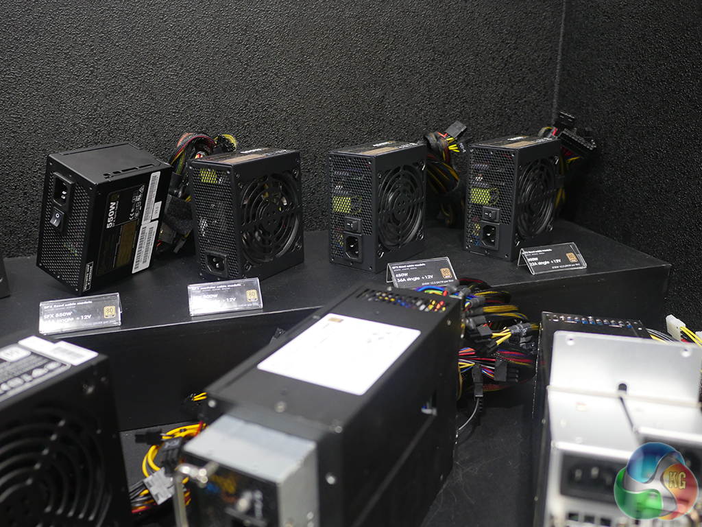 The Gemini PSU is made by FSP and packages two slender PSUs into a single ATX chassis. We wrote a bit more about that over on our look at the FSP booth. Other power supplies on display include the SFX-L Platinum rated fully modular power supply with ratings of 500W, 600W, 700W, 800W.