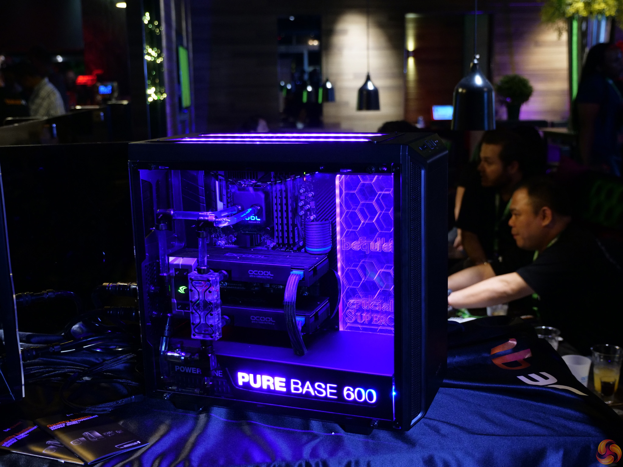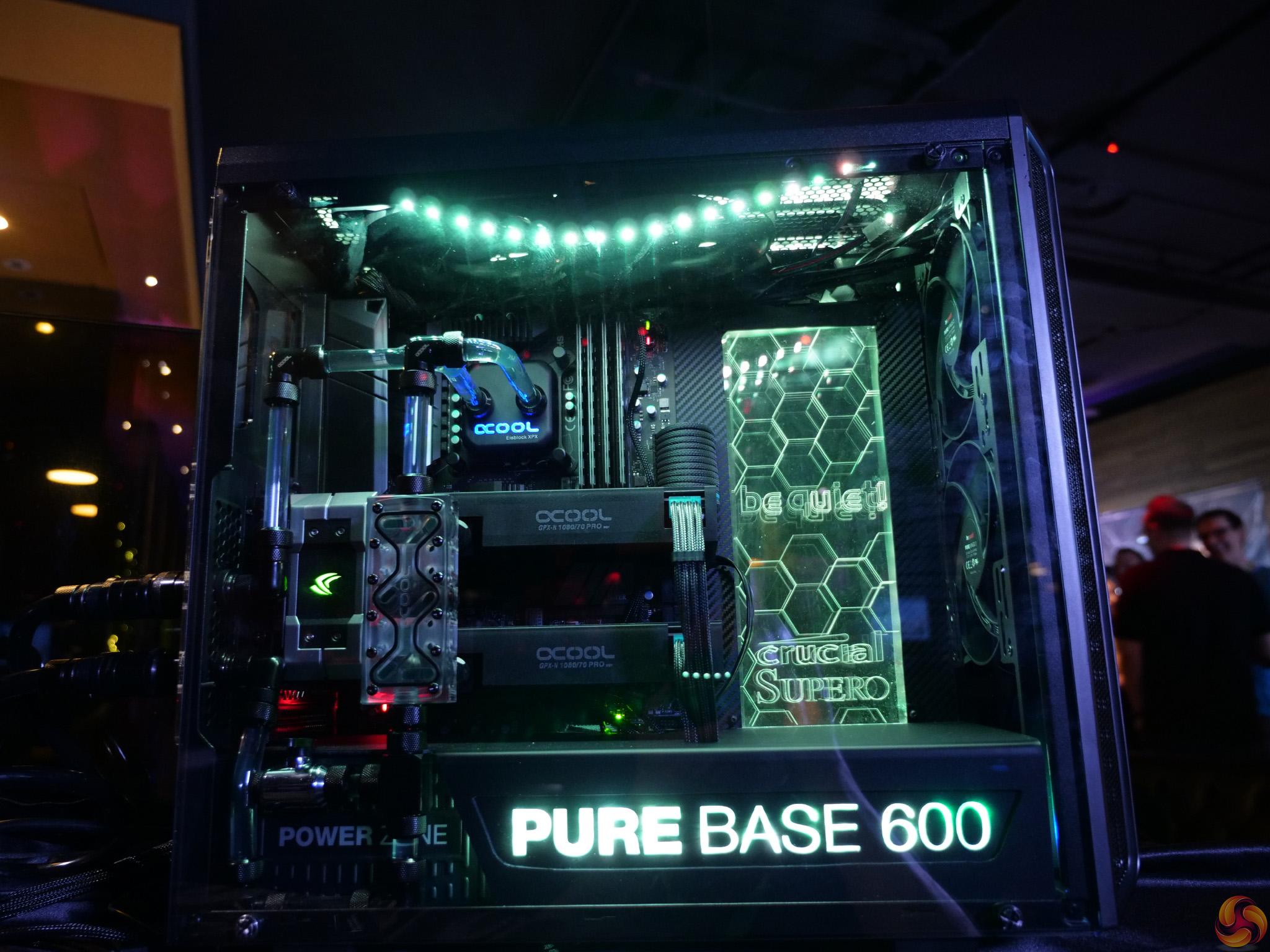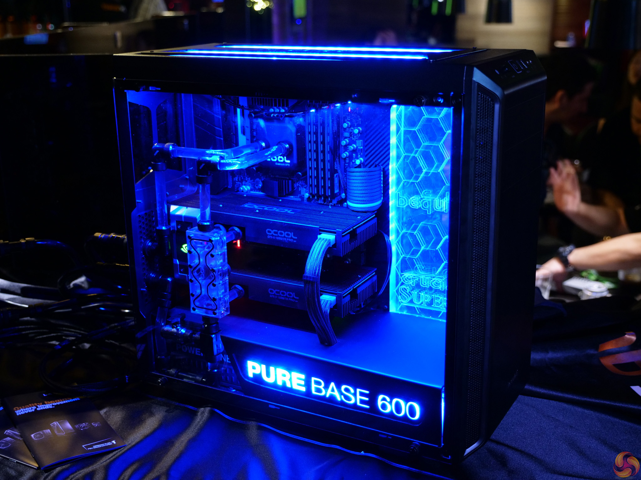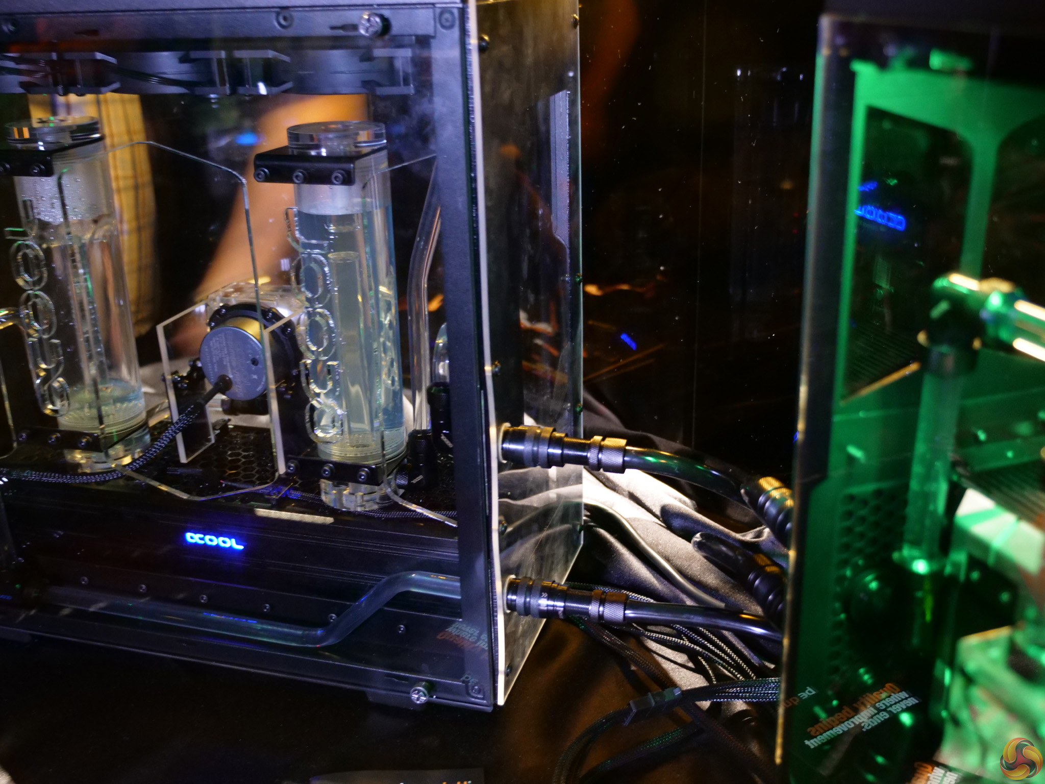 Companies like Corsair, bequiet!, Aerocool and Bitfenix had hardware on show, One particularly interesting built featured two bequiet! Pure Base 600 cases, one to house the PC hardware and another for liquid cooling gear, like the pump, reservoirs and radiator.