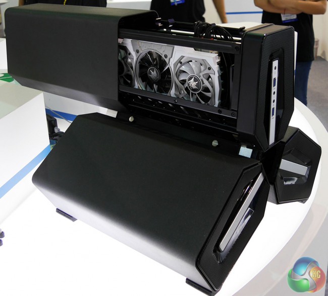 First up, let's take a look at the Tristellar Mini-ITX case, featuring three compartments built out of aluminium, with a unique look and a fairly hefty price tag, coming in at £400. There will also be a hand made variant but that one will sell for £500.
