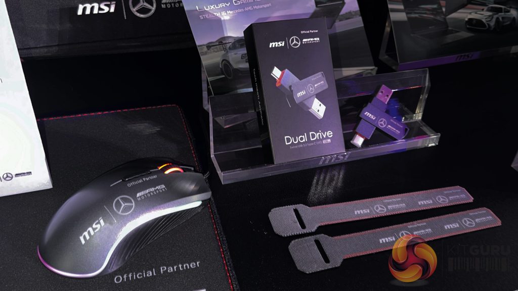 MSI’s efforts at a classy look-n-feel extend outside the AMG-branded laptop itself – in the form of a range of specially designed accessories. An exclusive Premium Bundle Pack features a mouse, mousepad, USB drive, and pouch – all showcasing the collaboration.