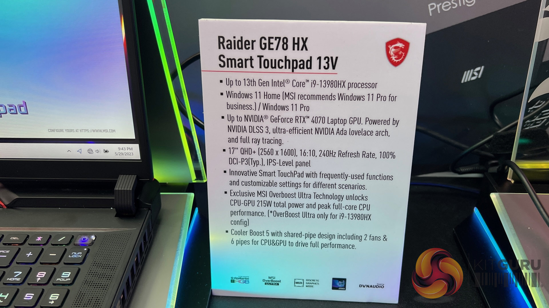 While the Mercedes sports cars at the event drew a lot of attention and the look/feel of the updated Stealth 16 is certainly appealing – the innovation that really caught our eye was the huge touchpad on the Raider GE78 HX.
