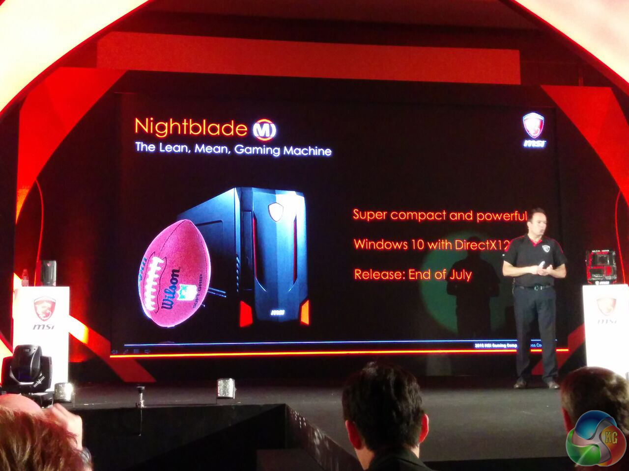 Now it looks like MSI is looking to expand the Nightblade lineup with a new gaming PC, which will be called the Nightblade M1. This PC will benefit from DirectX 12 and Windows 10 so don't expect it to be out until sometime after July. It is said to feature a Core i5 CPU alongside an Nvidia GTX 970 or 960 graphics card.