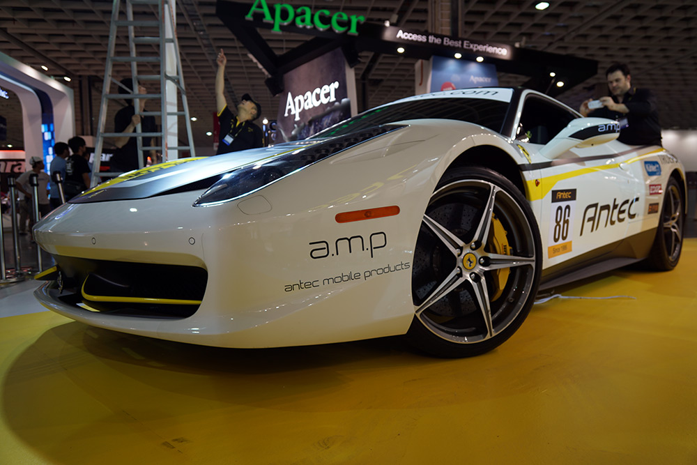 As you might expect at Antec's booth at Computex, there's a lot of cases on show, including its new P380. What you might not have expected though, is a bunch of mobile products being promoted by a fully Antec stickered Ferrari.