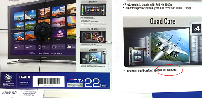 It’s not a mis label, it’s saying that it’s enhanced compared to dual core ones.. (Which Samsungs earlier line were, and most other smart TVs are)