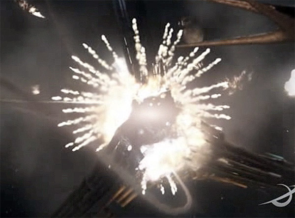 In space, there's no ‘blast‘ from the detonation, because there is no atmosphere to carry the pressure. So let's not worry about that.