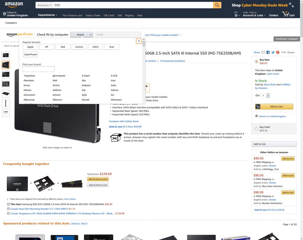 Amazon seems to have released the feature in a limited capacity, with Part Finder only showing up on some pages on the US version of the site. While it shows up on the Samsung 850 Evo SSD, other components including HyperX Predator DDR4 RGB 8GB 2933MHz don’t seem to provide access to the tool despite memory seeing many more compatibility issues than storage. This is inconsistent, however, as Kingston's HyperX Fury memory can be seen with the feature.