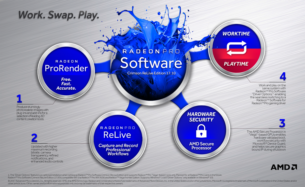 While catering to its Radeon Pro WX 9100 and Radeon Vega Frontier Edition graphics cards, developers will have access to “Driver Options”, helping to optimise development workflows. This new, yet optional feature allows for easy swapping between “Radeon Pro Software” and the latest “Radeon Software Crimson ReLive Edition for Radeon Pro” with either of the aforementioned cards.