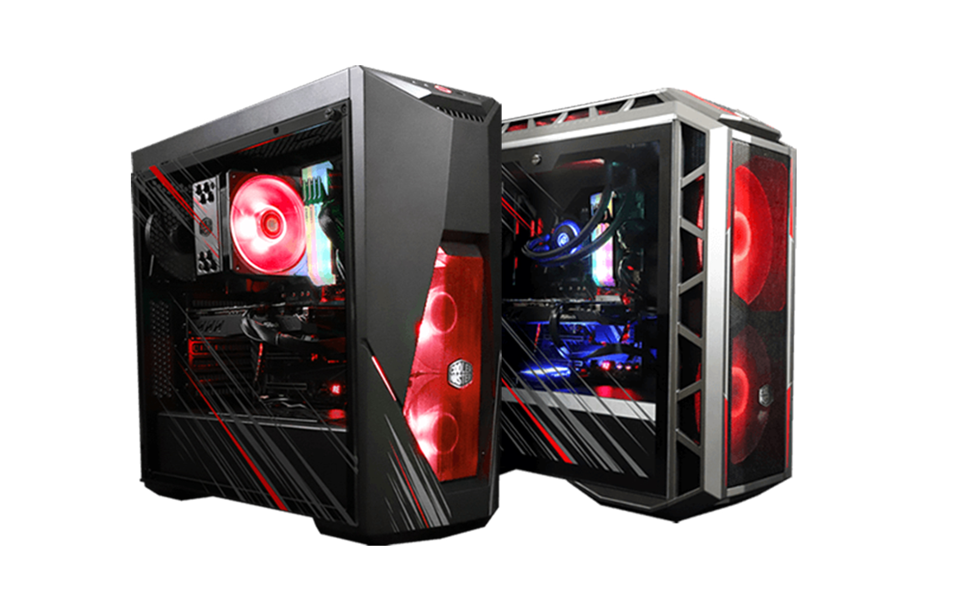 Cooler Master offers the majority of products in the first wave, starting with two Phantom Gaming Edition Chassis. Users can choose between a Cooler Master MasterCase H500P Mesh or Cooler Master MasterBox K500 Phantom Gaming Edition, redesigned with a black and grey aesthetic and paired with Phantom Gaming’s silver/red PG logo on the right side.