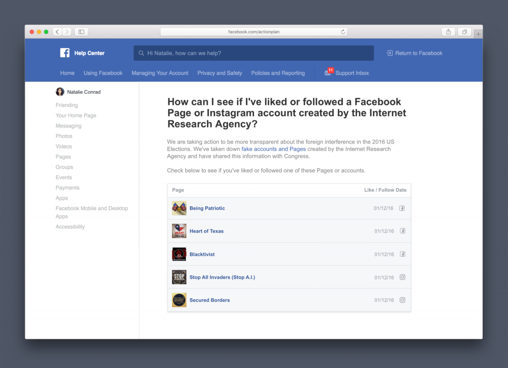 Facebook’s new tool will be limited in its functionality, only showing you whether you’ve liked or followed the accounts in question, meaning that you won’t be able to discern whether you actually saw or shared posts from those pages unless you manually figured it out from memory.