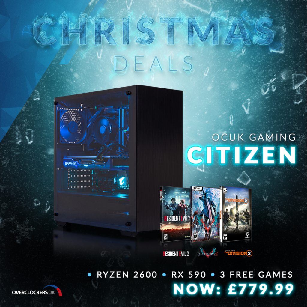 Overclockers UK’s Zenith Gaming PC returns from its now-expired Black Friday offer to cut a further £100 off the default asking price. Featuring a Ryzen 7 2700X and a Vega 56, this bundle includes The Division 2, Devil May Cry 5 and Resident Evil 2 Remake at no extra cost. Overall this will set users back £1,299.95, saving 23% off RRP. OCUK’s Citizen Gaming PC includes the same three games but comes in a little more affordable with a Ryzen 2600 and an RX 590 for £779.99, a 17% saving.