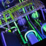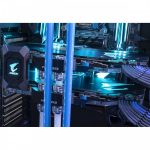 “We always wanted to do a truly mind-blowing desk build, with the idea being to contrast two different fluid colours by cascading each over the reservoir of the other,” states the INFIN8 team. “This became a key design feature of the Altar via twin tube reservoirs mounted to a custom base plate.”