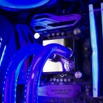 The Altar’s watercooling system equally balances aesthetic with practicality, using three triple-layer acrylic plates to precisely feed the cooling loops. The first plate channels the coolant from each of the two 400ml EK reservoirs, through the hard piping and into the opposite reservoir, which OCUK states is just for show. The second “manifold” plate provides access to the radiators dedicated to the CPU and GPUs, while the third “component” plate feeds the custom loop to cool them.