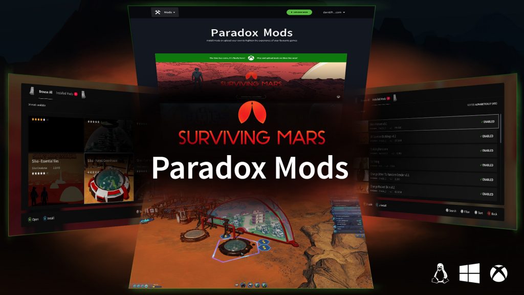 Surviving Mars will be the first supported game, launching with over 30 mods from community members Silva, ChoGGi and more. PC and consoles users can easily browse the library of modifications via the “Mod Manager” on their Paradox account, selecting them for automatic download and install. Simultaneously, the simulator now supports keyboard and mouse on Xbox One.