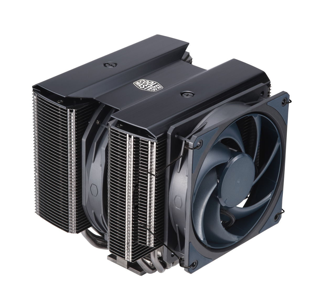 Starting with the air coolers, we have the Stealth edition of the MasterAir MA824 air cooler. Compared to the original, the differences are in the blacked-out design and two non-LED Mobius 120 fans. The Hyper series is also receiving some love, with the release of the Halo2 variant of the Hyper 212 and the new Hyper 622. The new Hyper 212 packs an MF120 Halo2 fan for increased performance and revised looks. As for the new Hyper 622, it packs a six-heat-pipe heatsink and two MF120 Halo2 fans.