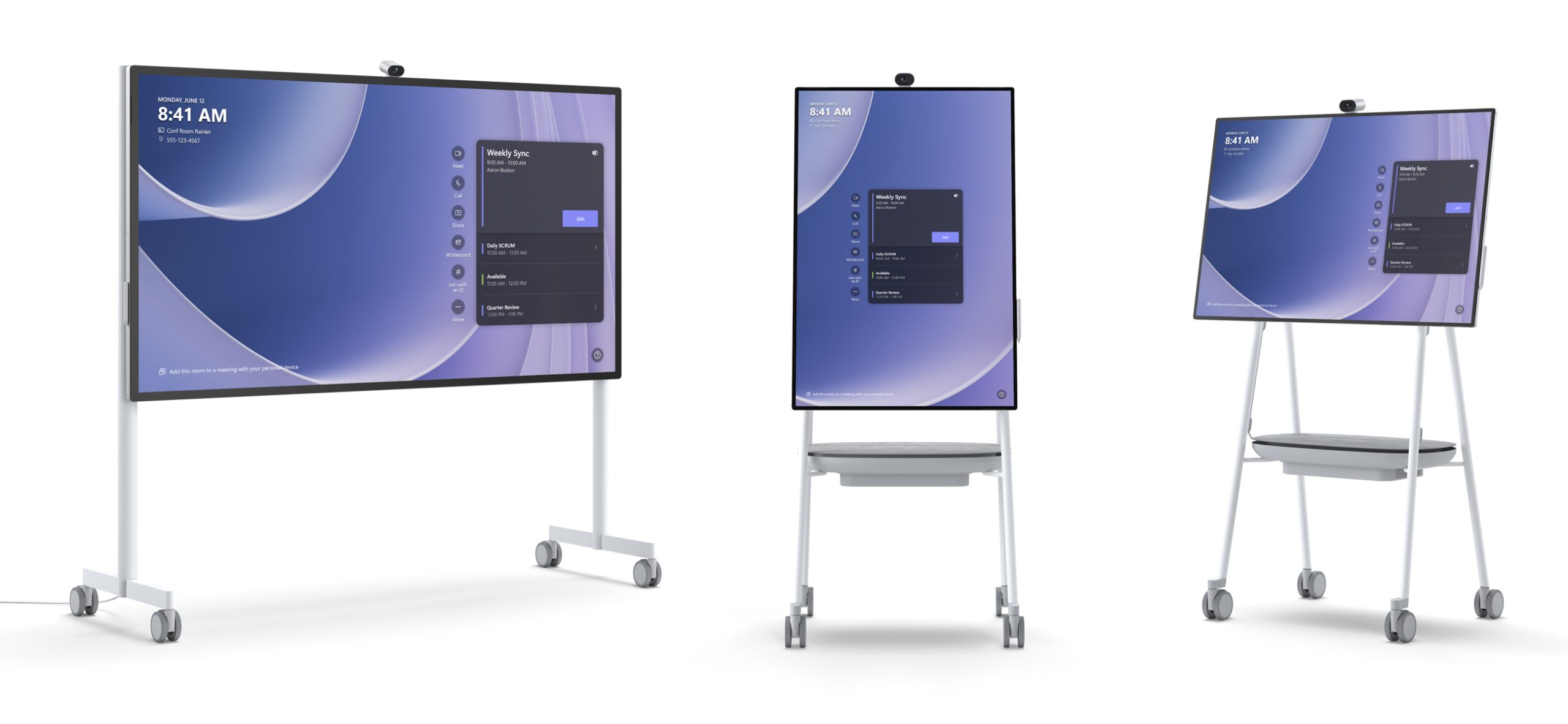 Lastly, there's the Surface Hub 3, a large touchscreen device for use in the office. The Surface Hub 3 will come in two models: an 85-inch model (3840×2160) and a 50-inch variant (3840×2560). The device is capable of removing the background from various participants and adjusting their sizes during Teams calls. The smaller model can alternate between portrait and landscape orientations. With Surface Hub Pens or Surface Slim Pens, two users can use the devices to simultaneously draw or write. Inside, there's an i5 CPU, 32GB of memory, and 512GB of storage. The 50-inch variant goes for £9,299 and the 85-inch for £24,649.