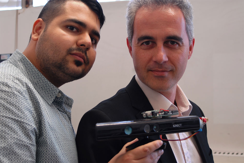 Dr. Banitsas seen here with the Kinect laser rig and PHD candidate Amin Amini Maghsoud Bigy