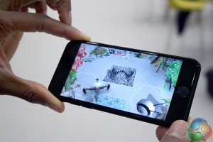 But of course these robots aren't just for walking, they're for battling too. In single player campaign or skirmish mode, you'll use a specialised mat to signify the augmented reality playspace and from there, the companion application populates the world with terrain and enemies. Although it's still being developed right now, the app currently has buildings and trees to navigate, as well as robotic drone enemies to shoot down with your various arsenal.
