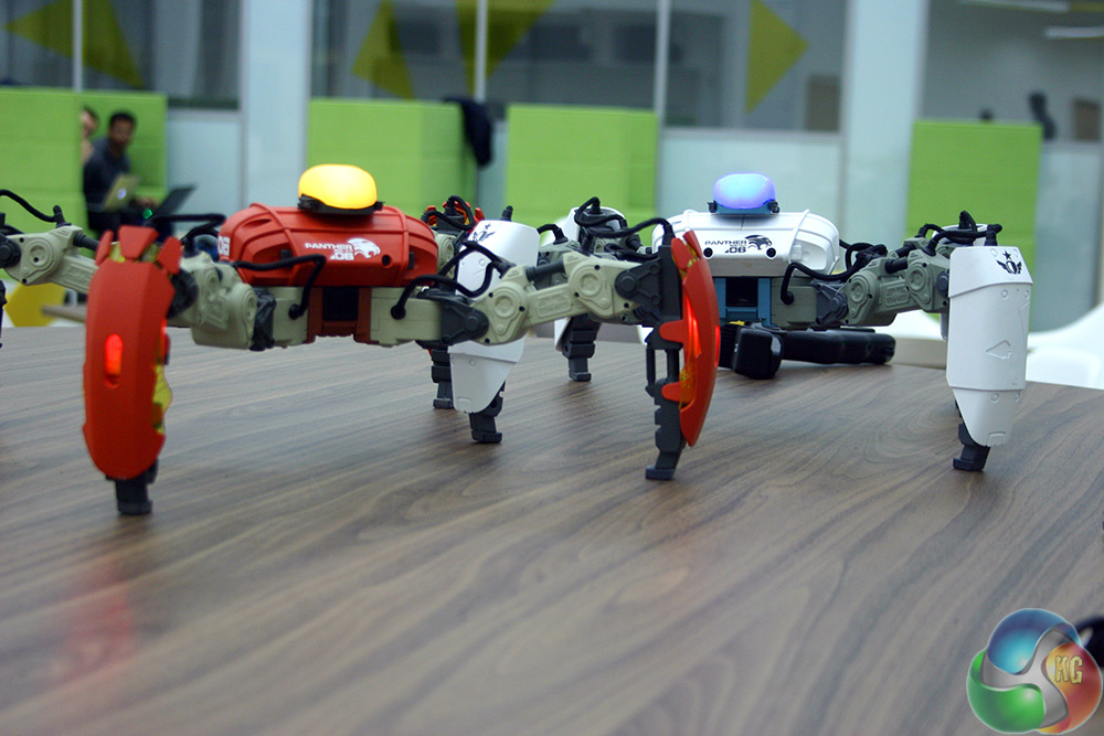 With a four-legged-span of around 30cm square and around 15cm in height, these robots can walk, crawl, shoot, spin, bow, dance and ‘die,' with appropriate and functional animations. With interest from kids as much as bedroom hackers, Reach Robotics plans to offer varied levels of access to the hardware, from simple pick up and play, dual on-screen stick controls, to much more-in depth customisation for those more interested in the mechanical side of things.