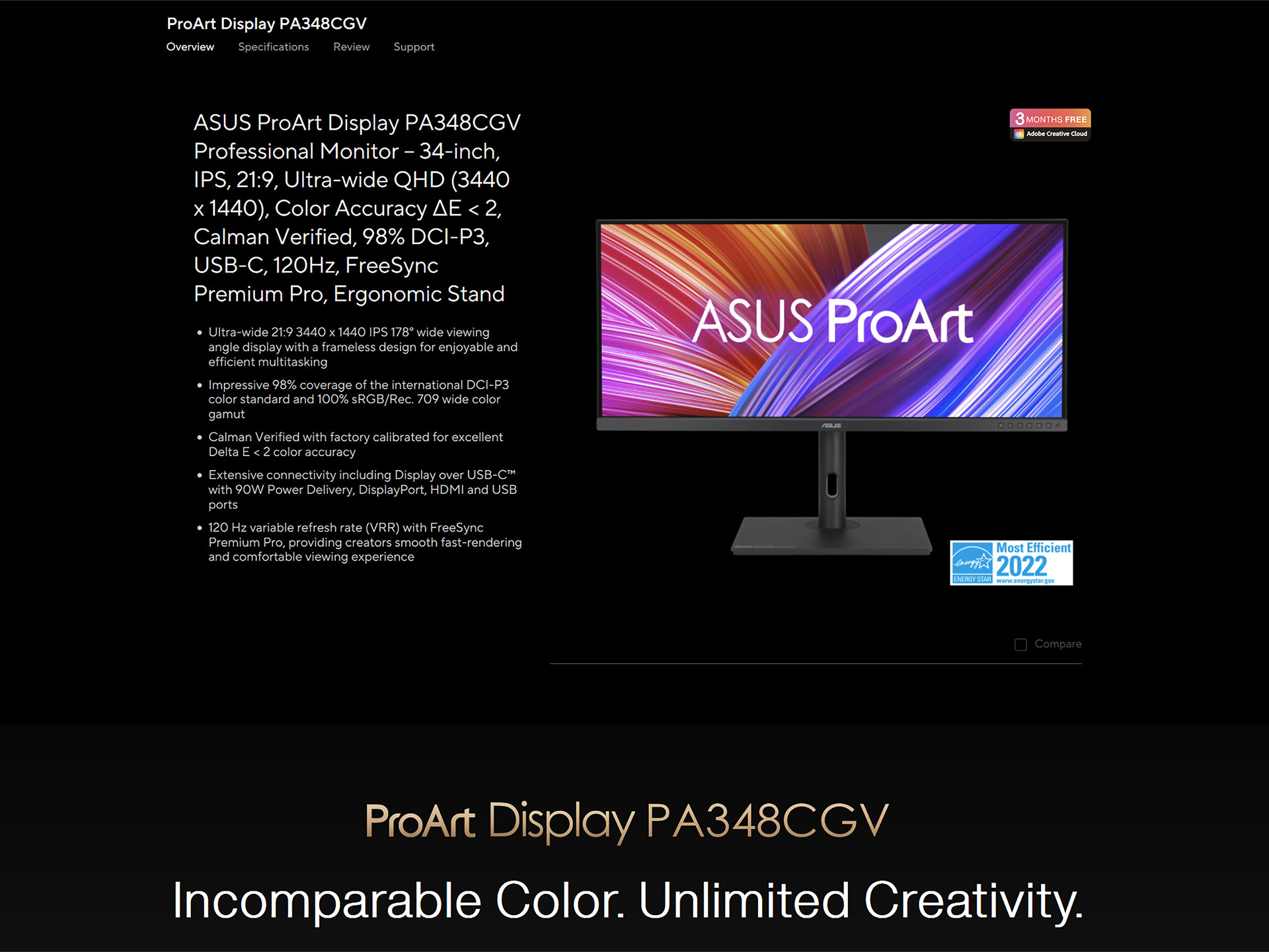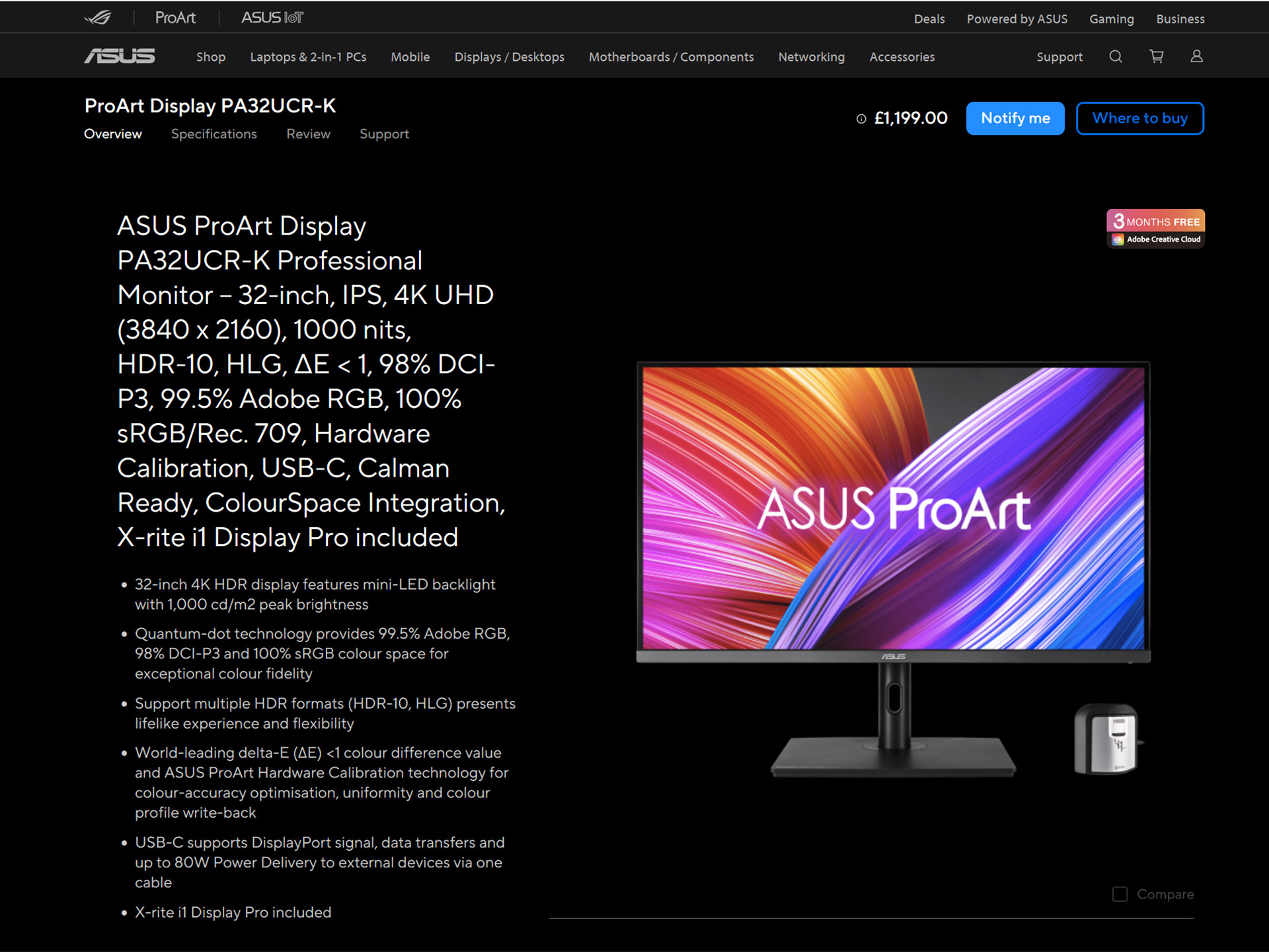 The common feature of the Asus ProArt family is an extended warranty that runs for five years instead of the usual three. The warranty is also better than usual as a replacement item can be sent out immediately, instead of waiting for the completion of the RMA process. As an added bonus you get a few months of Adobe Creative Cloud free with certain ProArt products.