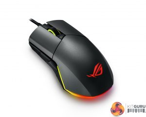The ROG Pugio ambidextrous mouse was shown to offer AURA Sync RGB lighting and features a 7200 DPI optical sensor. It will be available this month.