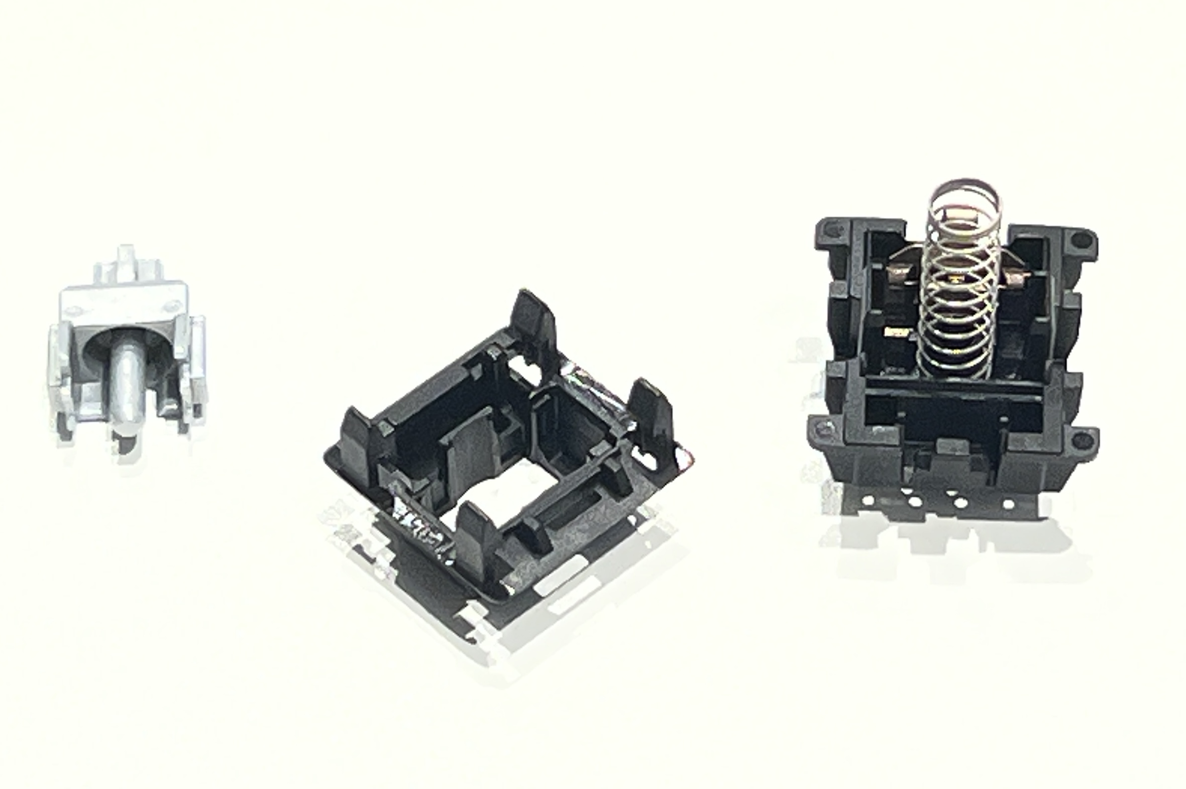 The MX2A switches ship with a new spring design, changing from cylindrical to barrel geometry for near-contactless linear movement, reducing spring deformation and scratching in this long-lasting switch. An updated, unique spring-centring stem adorned with a “crown” of ribs ensures a more precise and consistent feel and sound, reducing scratchiness and improving sliding properties. All MX2A switches will also use the Gold Crosspoint contact system, which is an industry leading feature enabling a debounce time of less than 1ms.