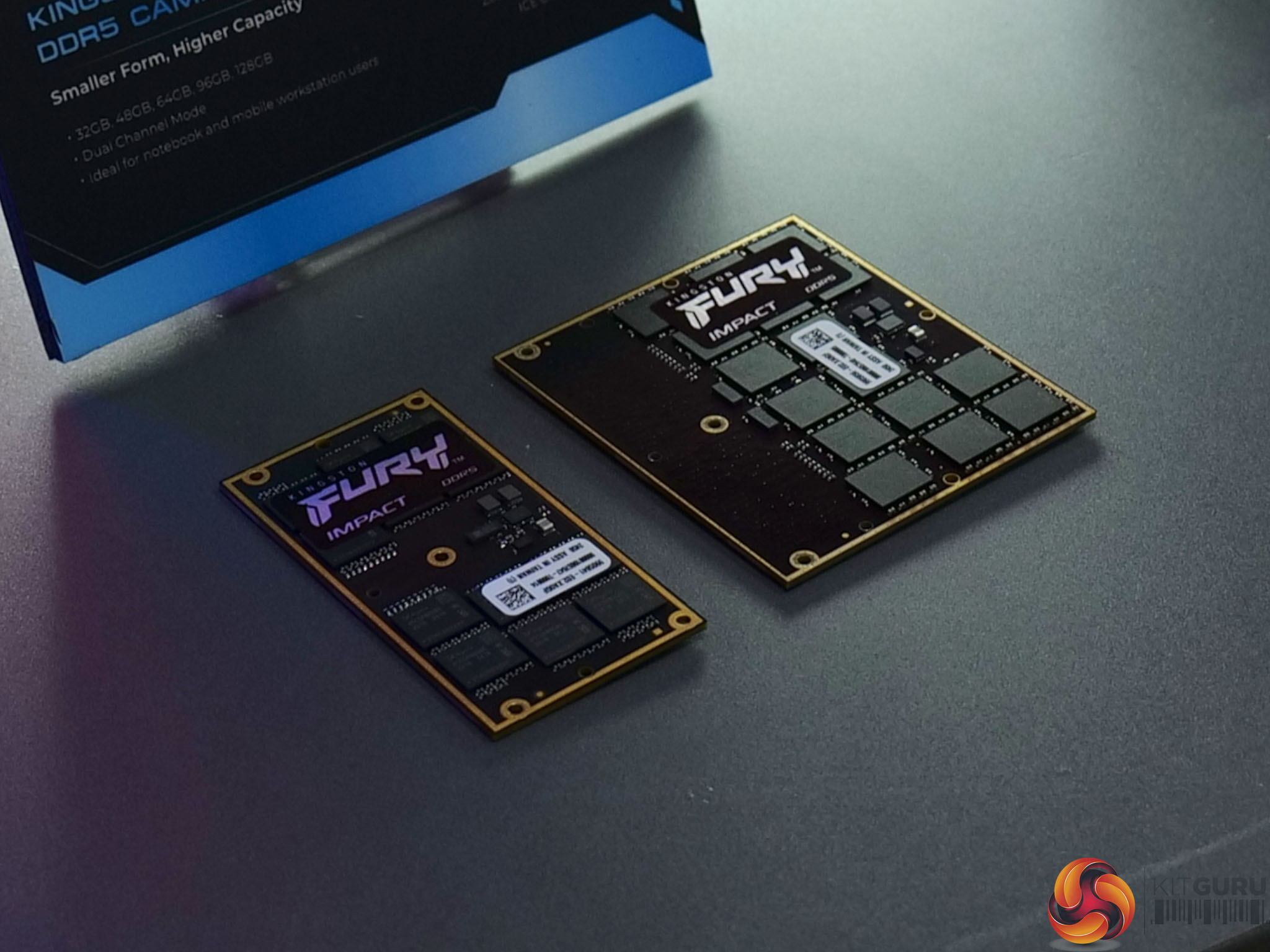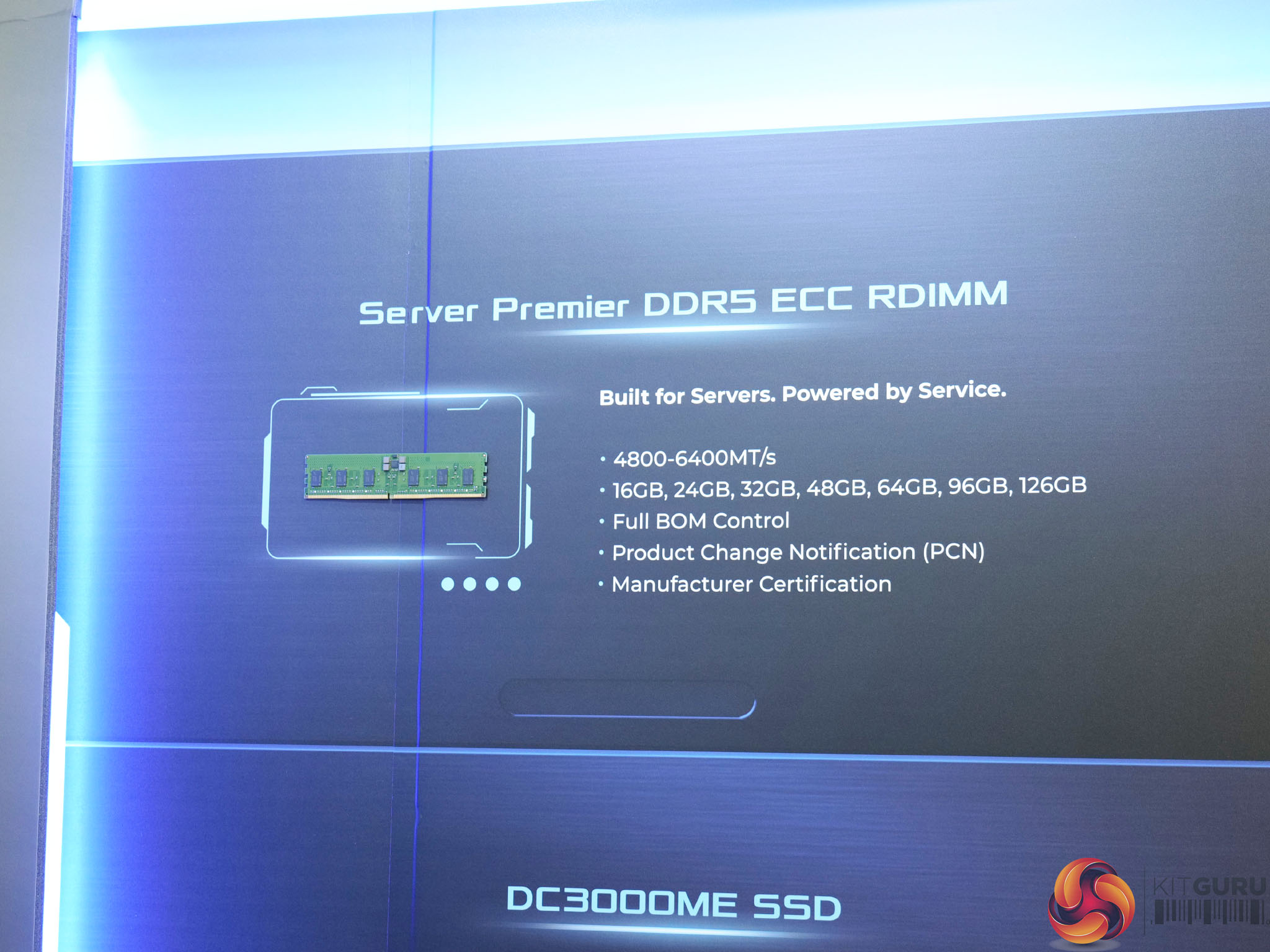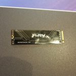 Finally, we get to the new Kingston Fury Beast CAMM2 memory module. This is a prototype based on the new CAMM2 standard, running on a prototype Aorus motherboard. These CAMM2 modules are capable of housing up to 128GB of memory. While we were anticipating CAMM2 memory to take over the laptop market, it seems that vendors are also working on desktop variations. Unfortunately, we don't know when CAMM2 devices will become available to the general public, but Leo reckons 2026 could be the year.