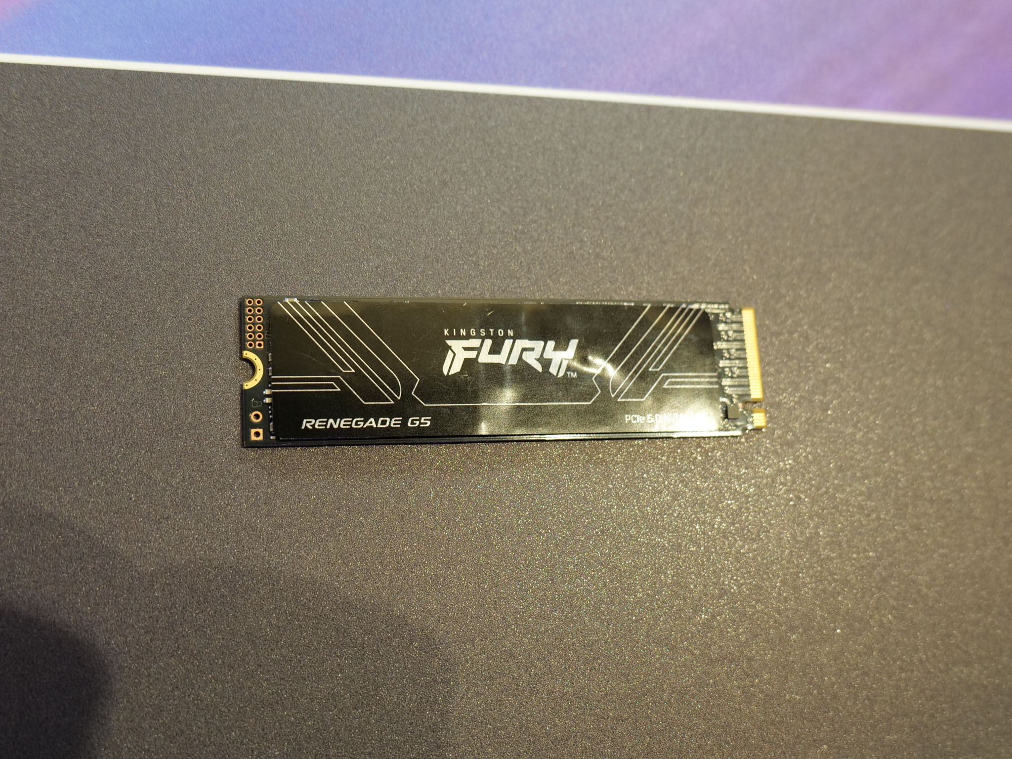 Moving on to consumer-oriented tech, we have Kingston's new Fury Renegade G5 SSD. This is Kingston's latest PCIe 5.0 NVMe SSD, offering speeds of up to 14,800MB/s, putting it in the upper echelon of PCIe 5 SSDs in terms of speed. We reviewed this drive just recently, so you can find a whole bunch of benchmarks and performance metrics there.