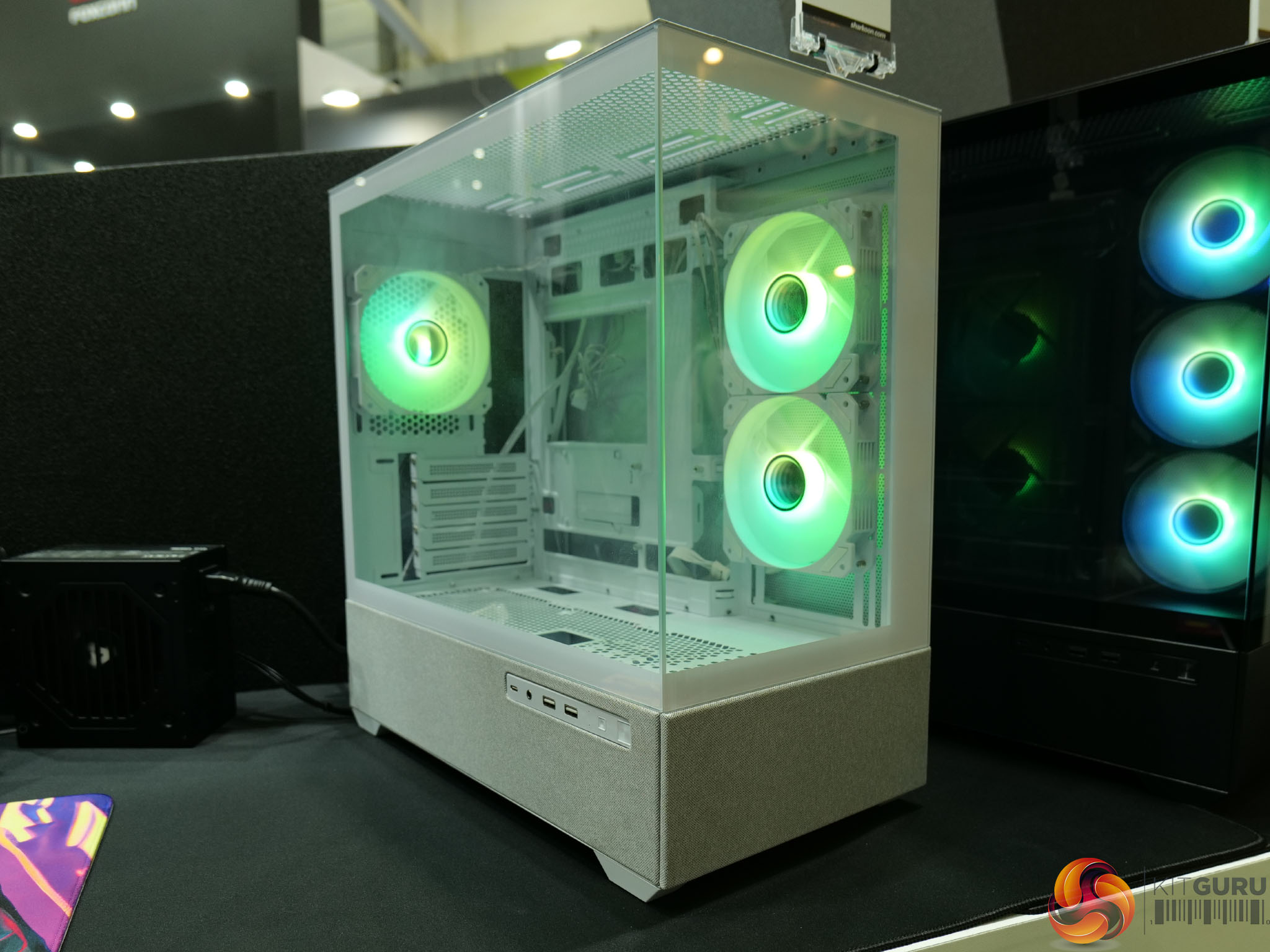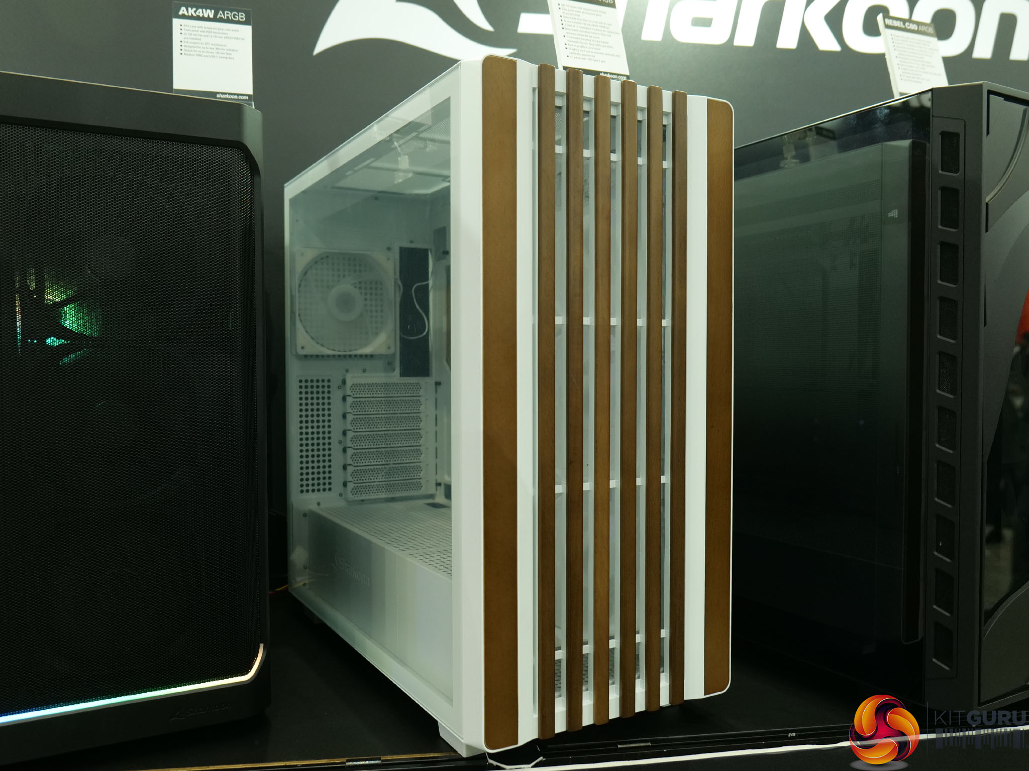 On to cases, we have the new Sharkoon AK7 RGB, a follow-up to last year's AK6, with newly included mesh panels running around the bottom of the case. For someone looking for a quick and easy RGB setup, the AK7 RGB makes a lot of sense thanks to the four pre-installed ARGB fans. The AK7 RGB also supports BTF motherboards, so all of your motherboard power connectors can be hidden at the back of the case for a clean front view of your components.