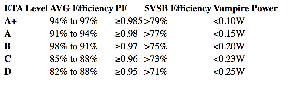The PSU efficiency rating is currently known as ‘ETA' and has five levels: A+, A, B, C and D. LAMBDA noise certification on the other hand consists of seven levels: A++, A+, A, B, C, D, and E. Manufacturers can choose to either display their basic level badge, or a more comprehensive bade that shows exact efficiency and noise ratings.