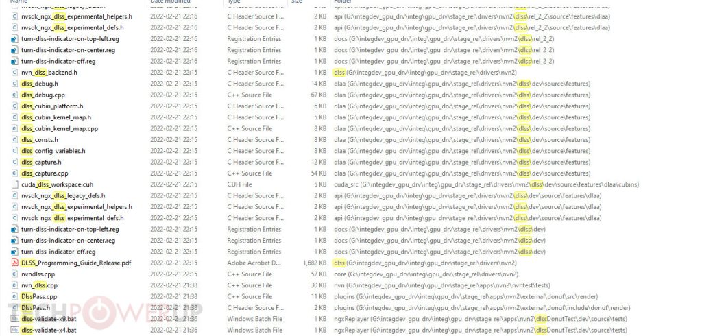 In the image above, which was passed along to TechPowerUp via an anonymous tip, we can see what appears to be the source code for DLSS. Deep Learning Super Sampling is a proprietary technology from Nvidia, which leverages the Tensor Cores on RTX GPUs to reconstruct low resolution images and present them in higher detail, thus saving performance in games and leading to significantly higher frame rates.
