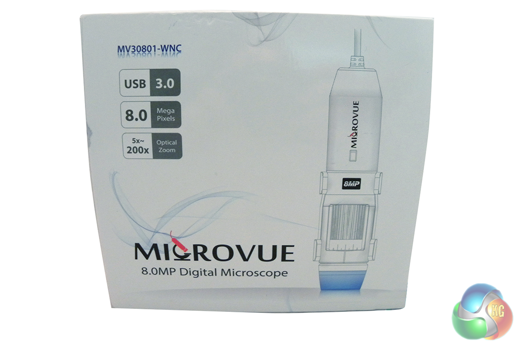 The box for the Microvue is all white with a very clean looking and simple design … this could easily be mistaken for a medical product.