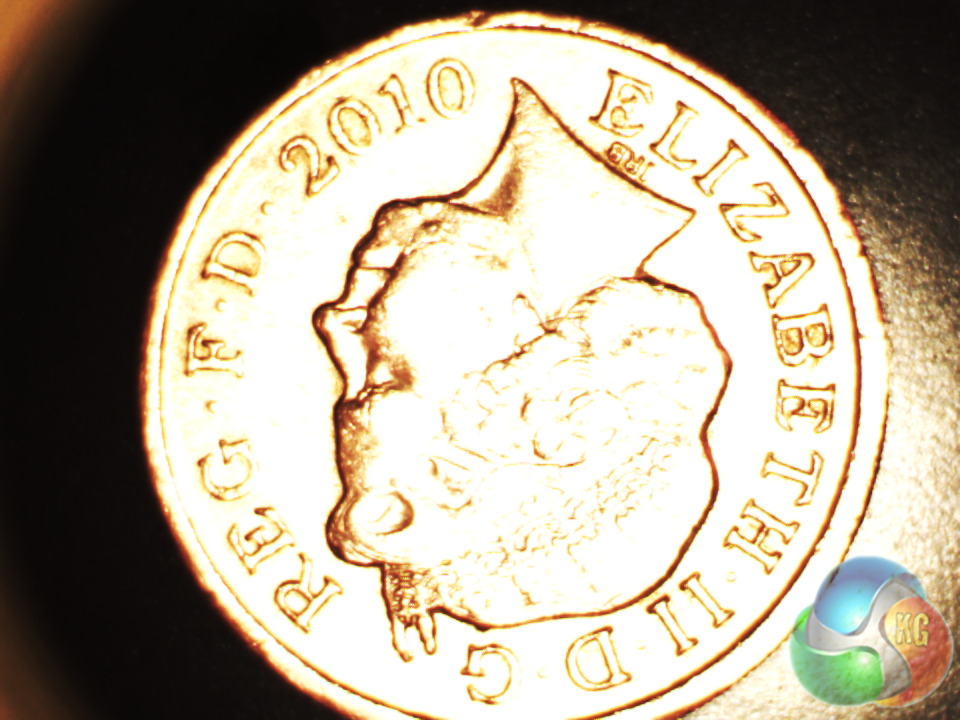 Unfortunately, due to the coin being so reflective the intensity of the LED's washed over the first image. That said, the second image of the coin's side came out much better with very little interference from the bright light.