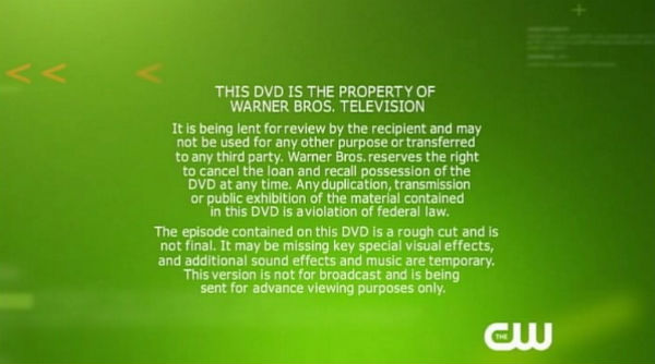 Thousands of people have already downloaded and shared the rough cut/leaked version of the episode, which is due to air on the 4th of November. As you can see above, the episode starts with a warning, stating that the DVD is property of Warner Bros for review purposes and should not be shared. The exact source of the leak is unknown, though I imagine Warner Bros is investigating things internally and won't be too happy with the culprit if found.