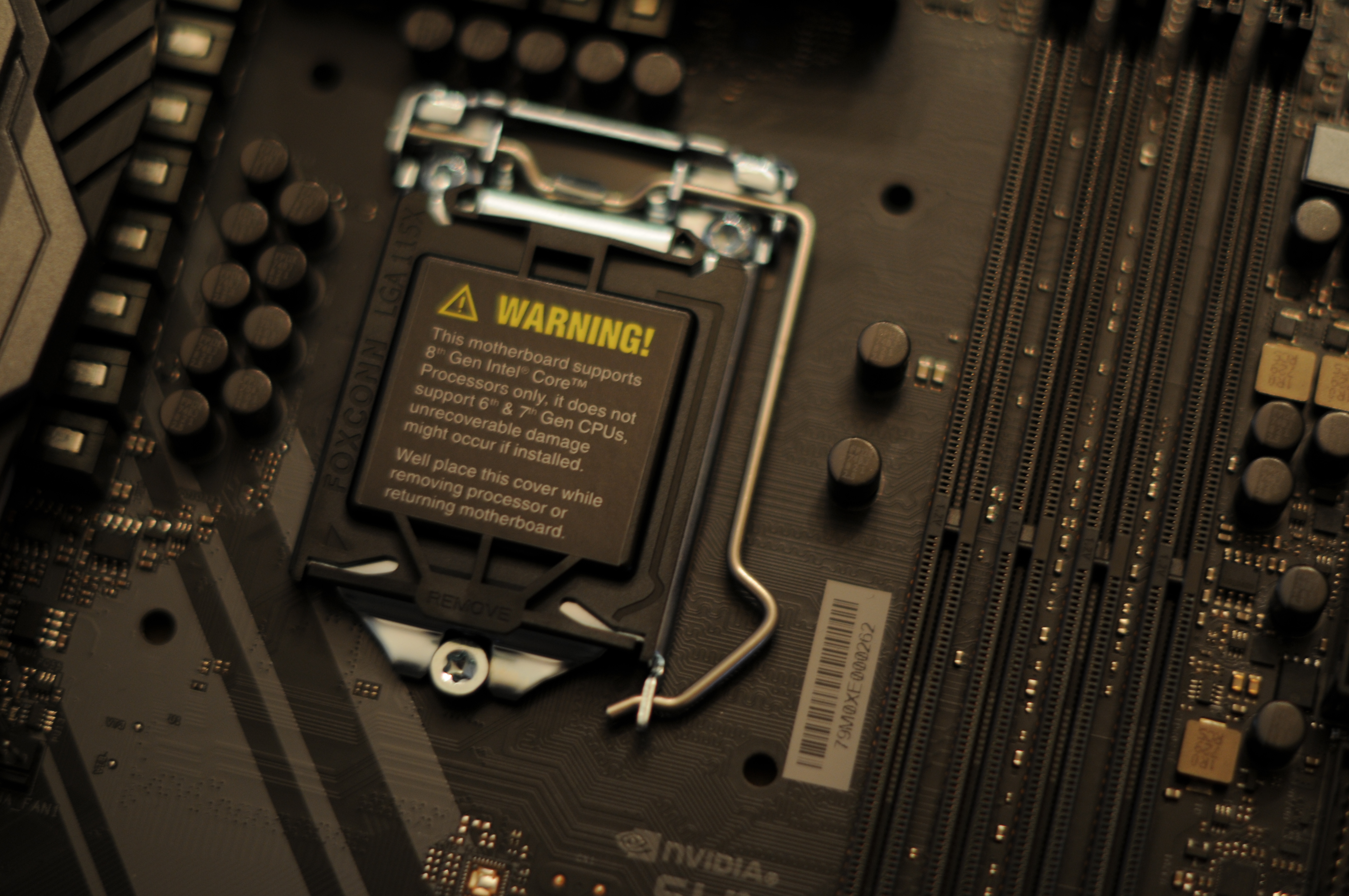 Moving onto the motherboard features, as you can see it has 4 RAM slots, with a maximum capacity of 64GB up to 2666Mhz, which are overclockable up to 4333Mhz, a standard 24 pin power connector for the board, 8 pin CPU power connector and a 1151 socket CPU slot which supports only 8th generation Intel CPU’s (coffee lake). For people who aren’t really a computer wiz, this means it only supports CPUs in the 8000 series (i5 8400 for instance), anything lower, like the 7000 series, won't work even though they are also Socket 1151.