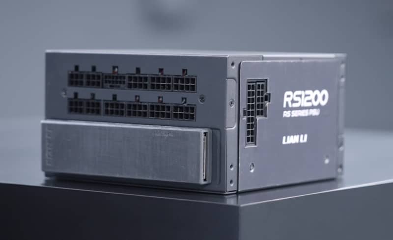 Moving on from cases, Lian Li also has some interesting power supplies on the market today. That includes the new RS Series PSU, which features a power port that can rotate towards the side of the PSU. This allows you to install the power supply in a rotated position for enhanced cable management and access without the need for extension cables.