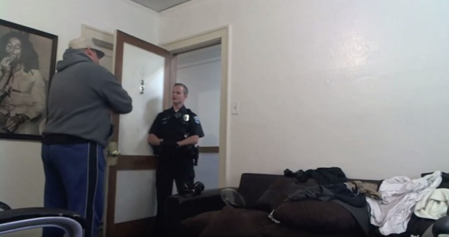 When the police officer initially showed up at Mr_13ig's door, he was asked for his name for a background check. In the middle of this, a man walked past and began to take pictures, which didn't help matters and spurred the argument further. Eventually, Mr_13ig was taken in to the hallway and arrested.