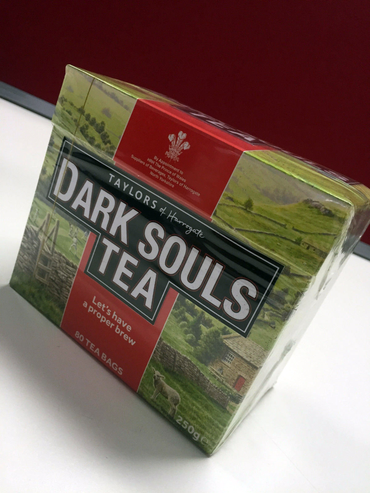 In a partnership that I doubt anyone saw coming, Bandai Namco and Yorkshire Tea have teamed up to offer a unique box, featuring a modified pack of 80 tea bags with a Dark Souls logo printed on the side. Little else has changed about the packaging or indeed the content – though we do wonder if there will be a more iron-like taste to the brew when steeped.