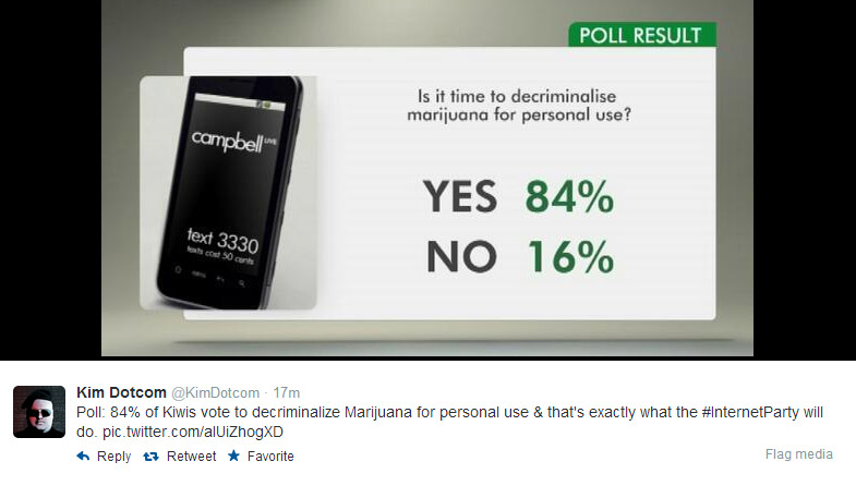 In other Dotcom news, he also endorsed the decriminalisation of cannabis, saying that the Internet Party would back any efforts to push that legislation through.