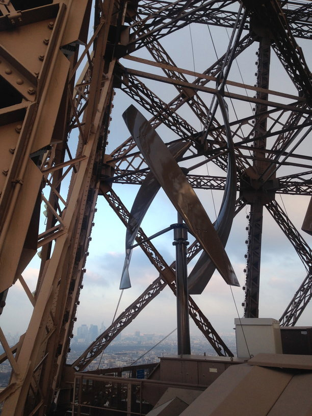 This is all part of a 30 million euro upgrade of the Eiffel Tower's facilities, which sees the twin Vision AIR5 wind turbines (that use a vertical axis, unlike the traditional windmill designs) providing up to 10,000 kilowatt hours of electricity per year, enough to provide power to all commercial areas of the structure. These specialised turbines are almost invisible, having been painted the same bronze colour as the rest of the Tower and fitted amongst the metalwork. They're almost silent too and can capture wind from any direction, making them very efficient.