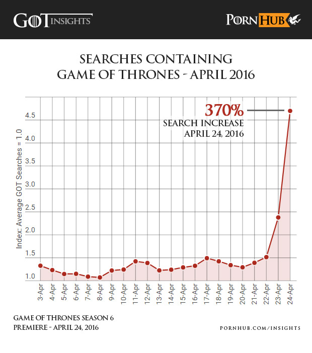 PornHub stats show that following the premier of the show, searches for GoT content went up by huge numbers