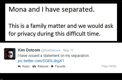 Dotcom's only official comment on the matter came through his Twitter, where he made it clear what had happened, but asked for privacy while the family sorted it out. As Stuff reports, Internet Party spokesman John Mitchell issued a statement saying that the new political party would not be affected by the split.