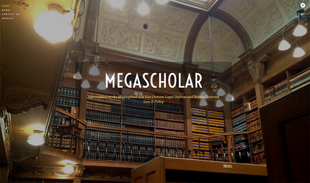 While the site was launched back in 2013, there still isn't much to Megascholar, simply featuring a background image of an impressively elaborate library and a “welcome” to the site with an image of Dotcom himself, along with US defence attorney Ira Rothken and copyright lawyer Rick Shera.