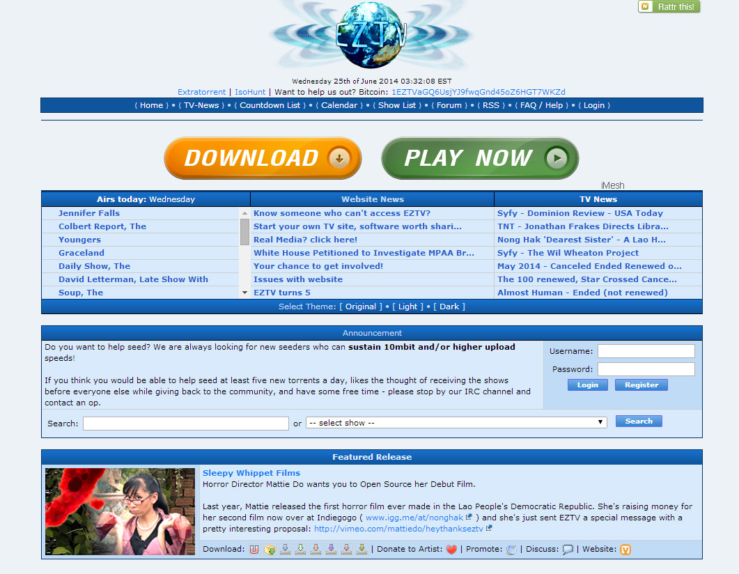 EZTV's block comes just days after it began funnelling traffic to an independent movie maker in LAOS to help fund her films