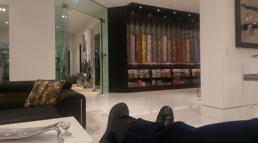 Yes that is his own personal US version of Pick N' Mix. Living the dream right?